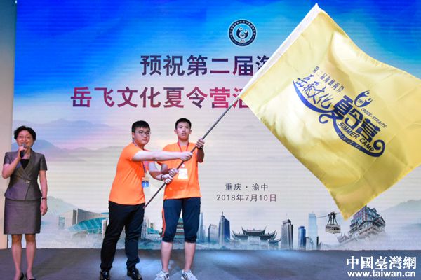 中国台湾网7月13日重庆讯 为促进两岸青少年一同传承岳飞爱国主义精神,认识中华优秀文化的魅力,7月10日,第二届海峡两岸岳飞文化夏令营在重庆市文化宫举行开营仪式。市台办主任胡奕向夏令营学生代表授营旗并宣布开营,标志着海峡两岸师生正式开启了领略岳飞文化的暑期之旅。在开营仪式上,两岸学子们观看岳飞文化夏令营主题宣传片《共同记忆》,同台演出精彩节目,感受岳飞文化思想,携手传承、发扬中华民族优秀文化,促进了两岸青少年心灵契合。