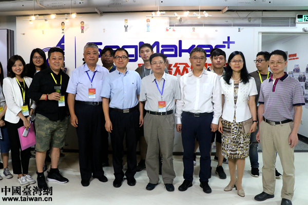 “海峡两岸记者特区行”联合采访团一行参观深圳赛格众创空间。(中国台湾网 尹赛楠 摄)