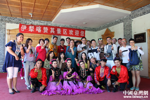 7月27日,“你好新疆——塞外江南大轰趴”采风团一行走进喀赞其民俗旅游区,体验和了解北疆地区维吾尔族民族风情。(中国台湾网发 新疆维吾尔自治区台办徐帆 摄)