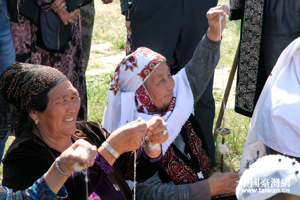 阿克奇村老人在捻羊毛线。(中国台湾网 王怡然 摄)