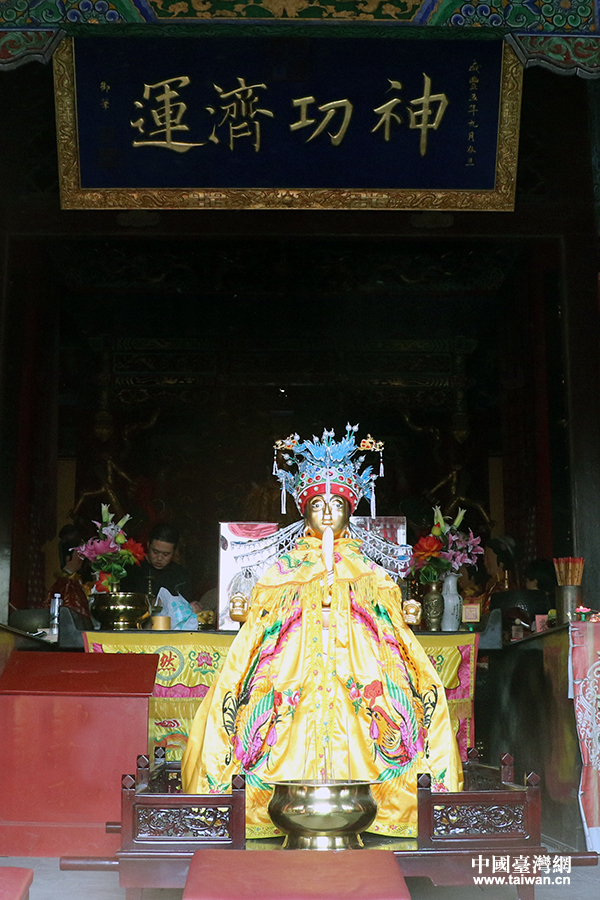 台湾北港朝天宫赠送的“黑面妈祖”像供奉在显应宫朝天殿。(中国台湾网 何建峰 摄)