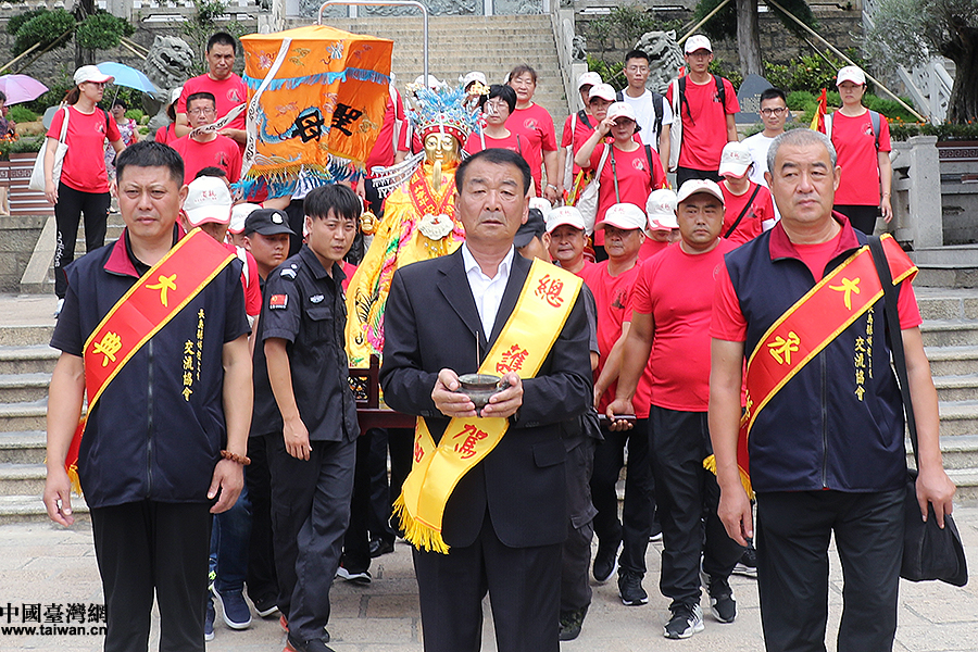 中国台湾网9月12日台北讯 (记者 何建峰)山东长岛显应宫千年妈祖金身日前结束了在妈祖故乡——福建湄洲的省亲活动,12日乘坐轮渡抵达台北,开启了为期13天的赴台结缘会亲活动。