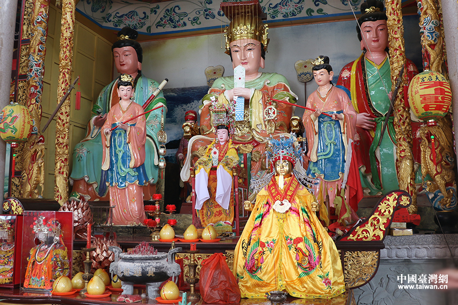 11日晚间,长岛显应宫妈祖金身驻跸在平潭岛霞屿天后宫。(中国台湾网 何建峰 摄)