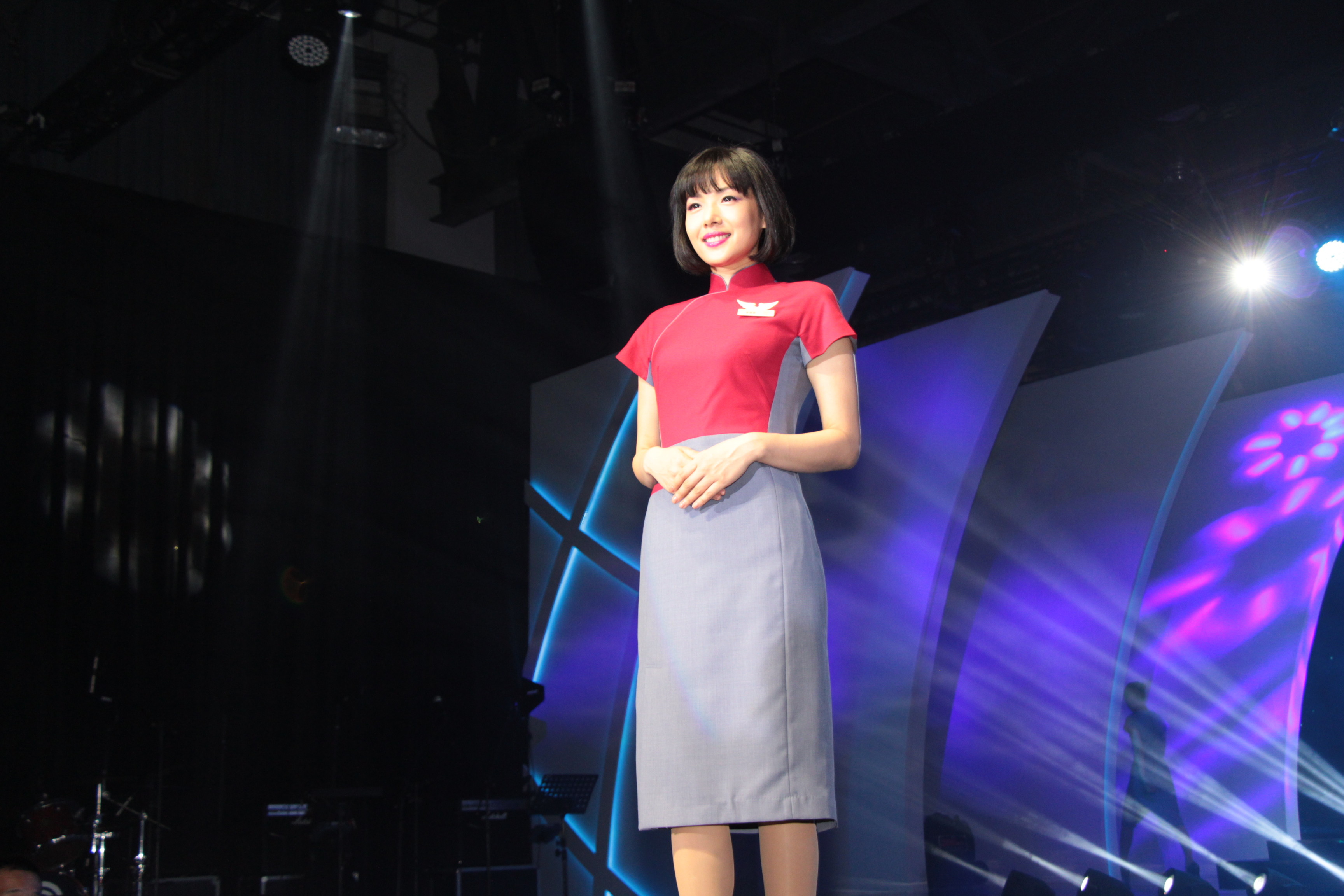 华航2015年换新制服,延续旗袍设计,但增添大胆红色点缀。(图/记者黄士原摄)