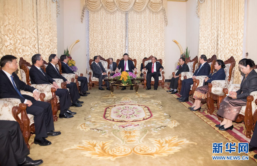 习近平会见老挝人民革命党中央委员会前总书记、前国家主席朱马里