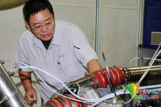 鹿新弟在检查机器设备。中国青年网记者张群 摄