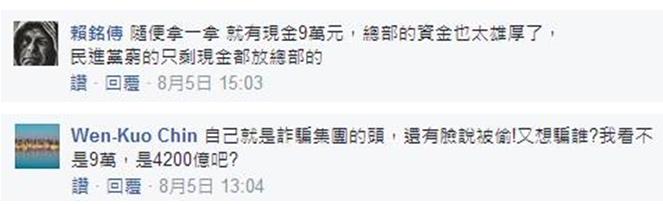还有网友表示,9万新台币真的不多,比起蔡英文“骗”老百姓的8800亿(新台币)。