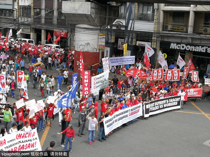 数千名菲律宾工人在马尼拉街头举行抗议活动