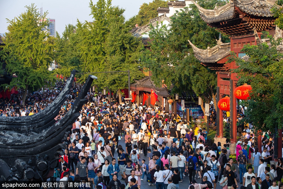 2018年10月4日,江苏南京,游客在南京夫子庙景区参观游览。