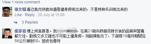 然鹅,网友依旧不买账,更有貌似曾当过兵的台湾网友说,这肌肉一看就是健身房练出来的,因为服役时军队伙食差、勤务又多又杂,别说肌肉了不瘦成皮包骨就好了……