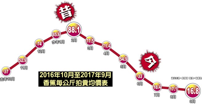 2016年10月至2017年9月台湾香蕉每公斤拍卖均价表(单位:新台币;图片来源:台湾《联合报》)