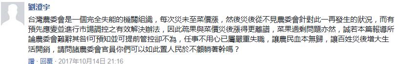 连台湾《中国时报》都发表文章直指“农委会”管控失当是令台湾“蕉金蕉土”陷入如坐云霄飞车般境遇的核心问题,更称其实“农委会”老早就可预防蕉价问题,无奈官员死守着农业自由生产的心态,放任农民无视超种预警,不愿强势介入管理,在眼睁睁看到蕉价崩盘后又不懂得自我检讨。此举完全凸显了“农委会”没有能力从根本解决问题,只抱着得过且过的消极心态。