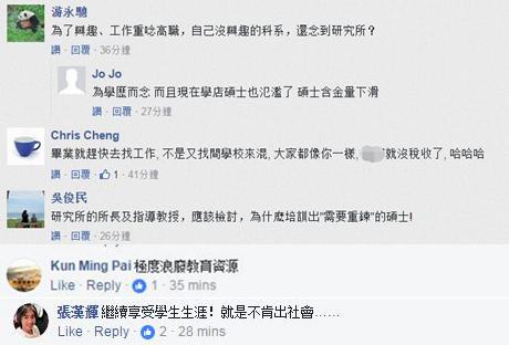 反对者则觉得如此是“极度浪费教育资源”,还有人质疑研究所所长“为什么培养出‘需要重炼’的硕士”,更有甚者认为台湾的“硕士含金量下滑”了。