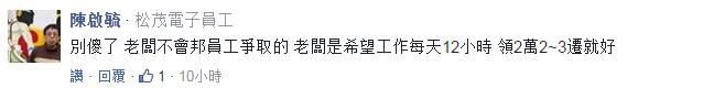 更针对“物价上涨”的质疑直言道,台湾劳工心态很奇怪,讨论着基本工资涨到3万物价会调涨,但这根本不是劳工该烦恼的部分,“因为物价的调涨不是你能干预的,有能力涨价的只有资方。”还说,既然劳工只能被动接受资方涨价,那现在担心这些有何意义?从“油电双涨”到“一例一休”,物价涨了不少,“你的薪资涨了吗”?