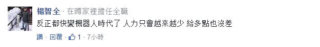 还有人调侃:反正机器人时代快来临了,就多给人力涨点钱喽;