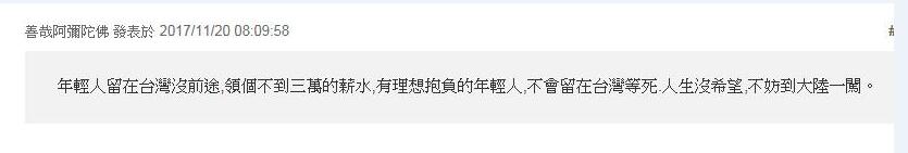 台湾网友也给出了解释,台湾被“空心菜”搞得虚无缥缈,大陆却是一片热火朝天:“绿营”为私欲而搞“本土化”,结果令台湾优势尽失,经济严重下滑,找工作也越来越难,有理想有抱负的台湾青年与其在台湾“等死”,不如到大陆求发展。