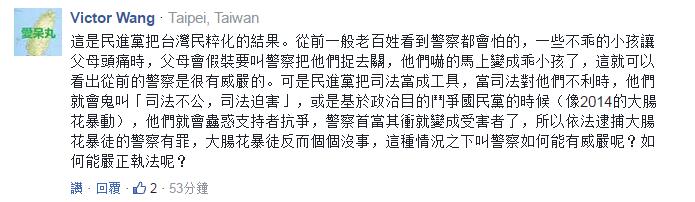 对此,也有台湾网友发表了自己的看法:挺警察,必先“司法改革”;若想“司法改革”,民进党就得下台!