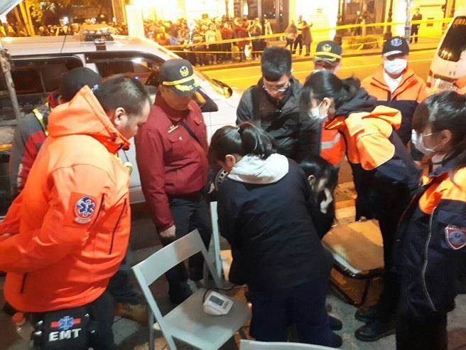 大直美丽华焰火意外伤者,在现场救护站人员处理后,所幸并无大碍。(图片来源:台湾《中时电子报》)