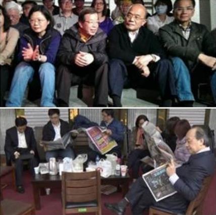 有粉丝专页分享两张民进党同样“守”在“立法院”的照片。(图片来源:台湾《中时电子报》)