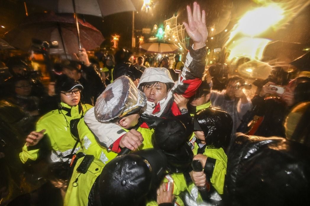 直到8日凌晨4点时,台北市警察局终于展开了“驱离”动作!据台媒报道,警方到场后,大声表示当天是上班日,“基于市民用路需要,要维护交通秩序”,加上“立委”禁食需人道考虑,因此实施“保护带离动作”,并动用了两辆大型警备车与两百多名警力排成人墙,以包围、分隔的方式,将现场静坐抗议的“立委”与民众分批送上警车,之后合计10男6女被警方带走。