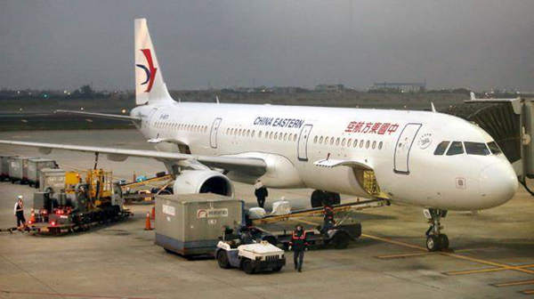 图为1架东方航空班机从上海飞抵桃园机场。(图片来源:台湾《中时电子报》)