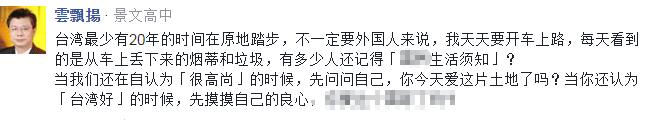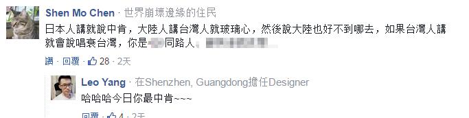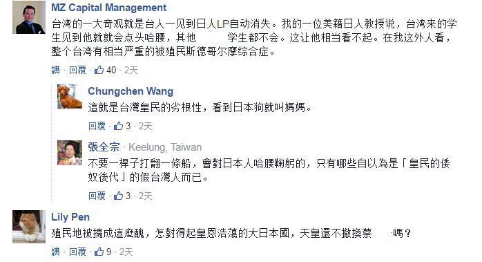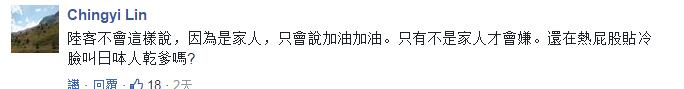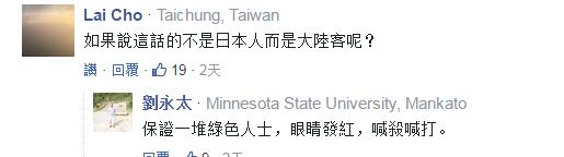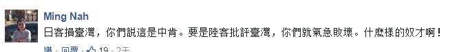 除此之外,另一些台湾网友的争论点则是放在了批评的“发声主体”上,“幸好是被日本人酸,换做是大陆人,(对方)岂不是被骂翻天”、“日本人批就评价‘中肯’,换成陆客批,你们就气急败坏,还得说大陆也好不到哪里去”,“这就是台湾人的‘奴性’”。