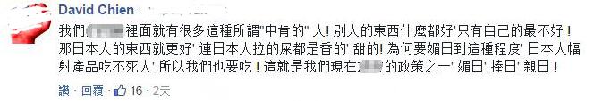 也有一些人认为会对如此批评称赞“中肯”的人,都是拜如今蔡当局“媚日捧日亲日”的政策所赐,“在日本人眼里,别人都是脏的,但别忘了,台湾是因为被日本占领殖民过才会脏乱的”、“台湾‘皇民’的劣根性,看见日本就叫妈妈”。