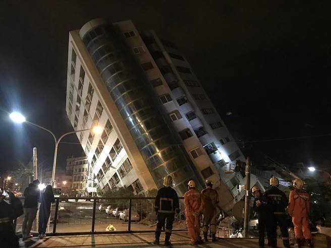 花莲强震致多处大楼发生倾斜状况。(图片来源:台湾《中时电子报》)