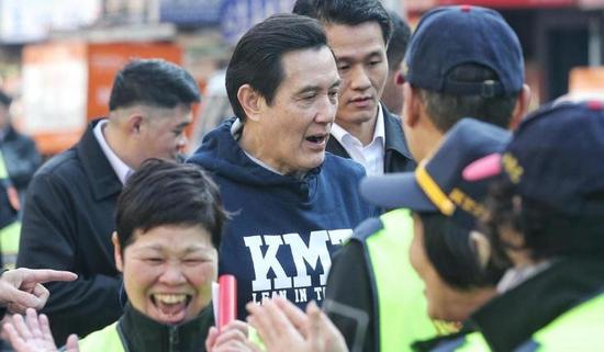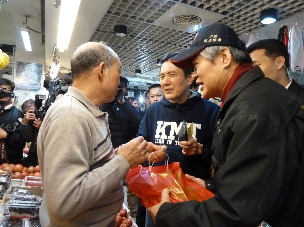 马英九买年货获民众热情簇拥回应。(图片来源:台湾《联合报》)