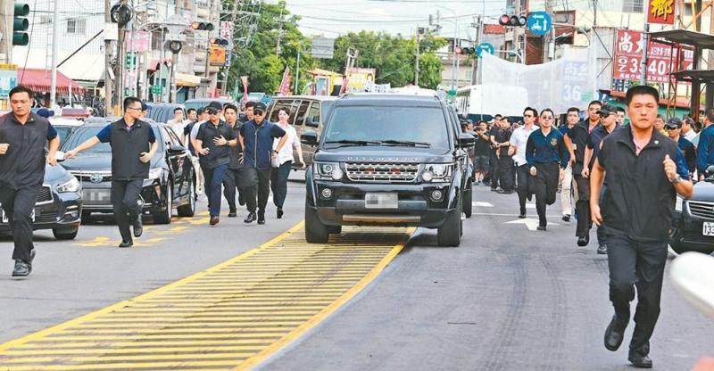 维安阵仗浩大的蔡英文车队。(台媒图)