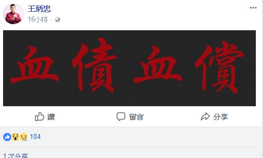 王炳忠发文“血债血偿”。(图片取自台媒)