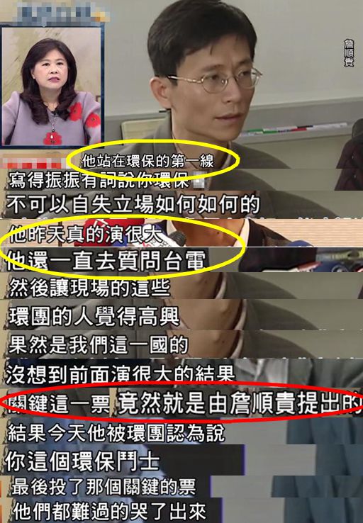 据悉,在当天的审查现场,詹顺贵先是假模假样地质疑台电,让环团抱持希望,没想到所有的前戏都是为了最后的“关键赞同票”,气得环团直哭,前台北市副市长李永萍不禁痛批詹“真的演很大”!