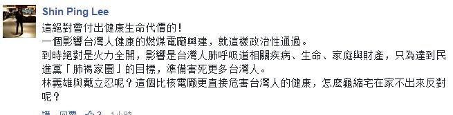 他的小伙伴、所谓的食安学者,之后也跳出来为其摇旗打气,说深澳燃煤电厂采用的都是能降低空污的最新科技,你们都不懂!