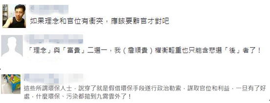 据台湾“联合报”报道,近日,台湾“环保署副署长”詹顺贵14日于环评大会中投下关键一票,让深澳电厂环评修正通过一事在台湾闹得沸沸扬扬,引发北部六县市反弹,以及环保人士的集体抗议。这位从前的“环保斗士”的“惊天一投”让昔日的战友都深感被背叛,还称“个人喜好不能凌驾‘法律’”更被网友讽刺:“如今换了位子就换了脑袋”。
