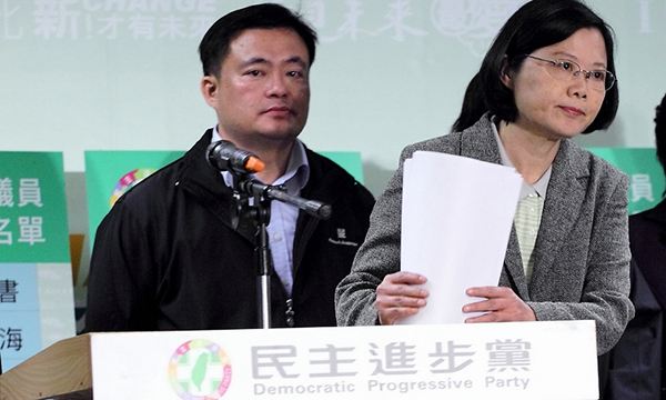 民进党秘书长洪耀福与党主席蔡英文。(台媒图)