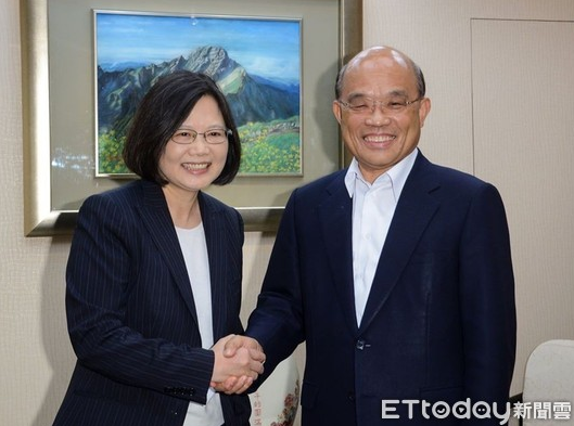 蔡英文(左)属意苏贞昌(右)参选新北市长。(图片来源:台湾“东森新闻云”)