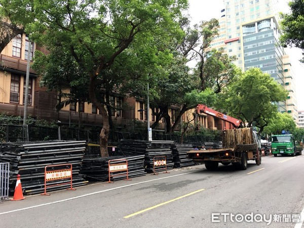 台湾“立法院”外增加拒马。(图片来源:台湾“东森新闻云”)