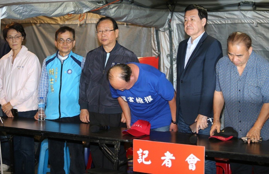 抗议军人年改行动25日爆发流血冲突,“八百壮士”副指挥官吴斯怀晚间向媒体与社会大众鞠躬道歉。(图片来源:台湾《联合报》)