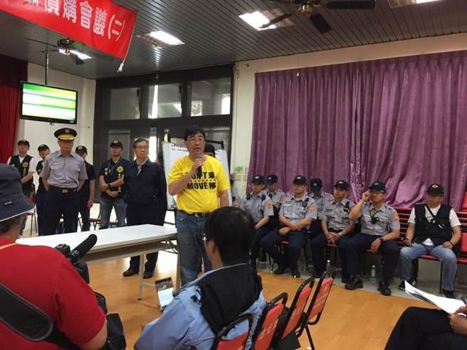 台湾政治大学地政系教授徐世荣对此表示,“一个协议价购会议,警察竟然这么多,宛如是恢复到过往戒严时期。”(图片来源:台湾《中时电子报》)