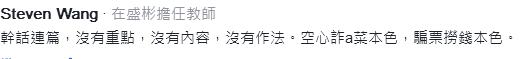 蔡英文此言一出即遭到台湾网友痛批“自我安慰,阿Q想法,今年就是去不了,明年后年应该也去不了。”“文青读稿机,再度发挥自慰精神。”“选一个败家的来搞垮台湾”“讲的全是屁话!”