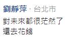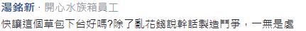 台网友对此怒骂“今年花完,明年没钱缴税,你是要替我缴吗?”“‘鬼岛’悲哀!”“毫无储蓄概念。”“她哪来的自信不会搞垮台湾经济啊。”“干话筒”“到底在讲什么啊!”“台北股市现在一万多点叫人家赶快进来买股票?是让外资比较好出货吗?万一520当天台股下杀破九千点,菜你要赔吗?说你们绿色‘台独党’是诈骗集团,真的不假。”“这党说的话听不得,我看可能又要搞老百姓了!”