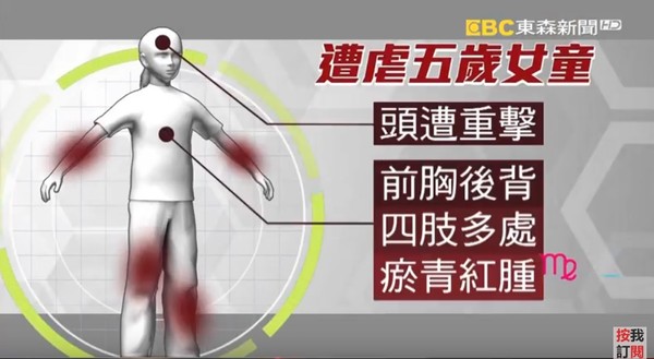 5岁女童疑被姨夫性虐致死。(图片来源:台湾“东森新闻云”)