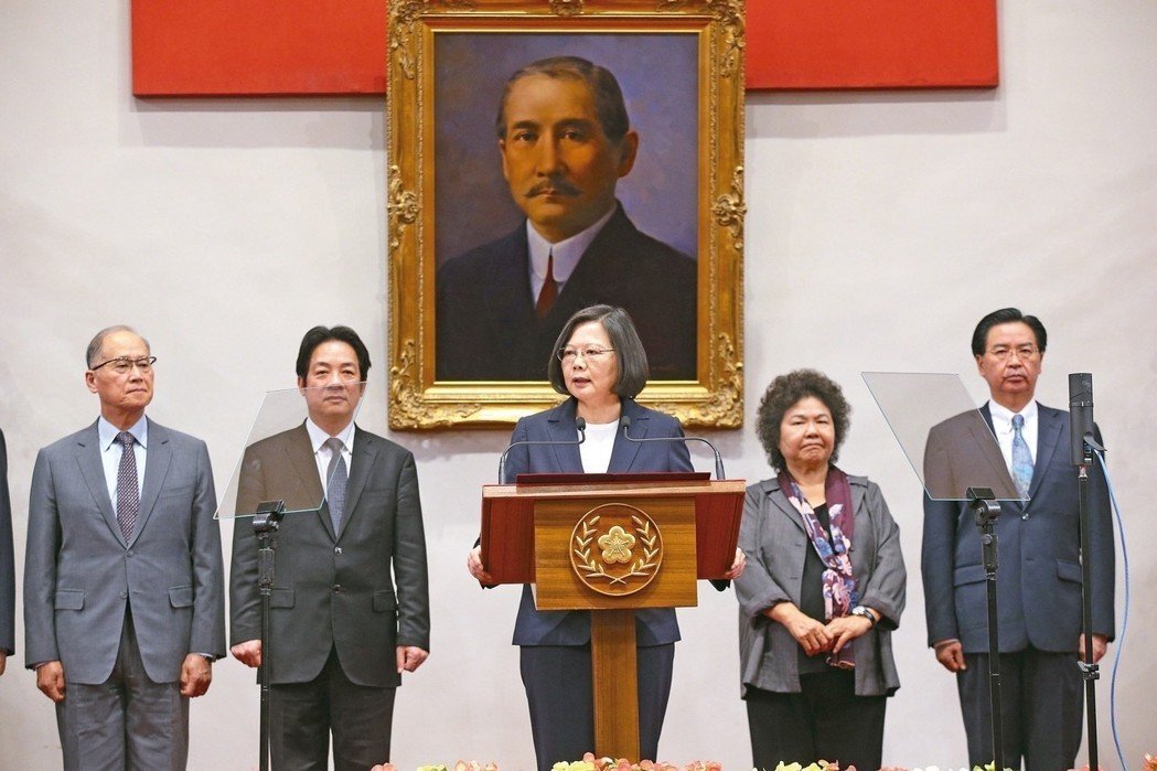蔡英文率众召开记者会。(图片来源:台湾《联合报》)