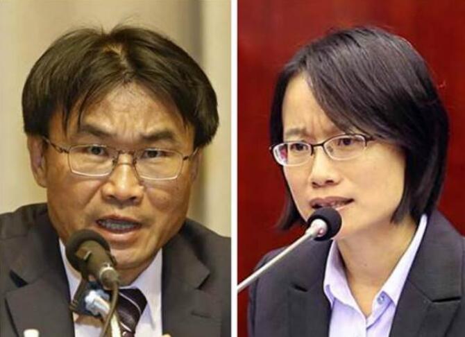 台当局“农委会副主委”陈吉仲(左)、北农总经理吴音宁(右)。(图片来源:台湾《中时电子报》)