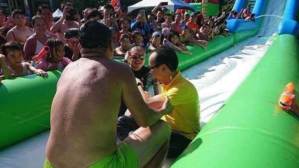 报道说,新北市长朱立伦昨天出席“五股儿童水乐园”活动,不仅和现场小朋友展开“水枪大战”,还挑战长40米的天空滑水道,与市民同乐。