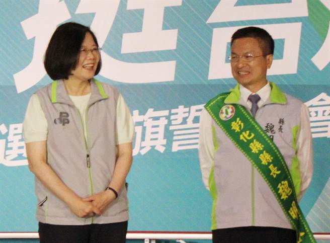 蔡英文与彰化县长魏明谷。(图片来源:台湾“中时电子报”)