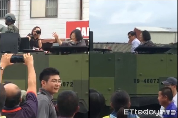 蔡英文勘灾神似谢票:坐装甲车、微笑向灾民挥手致意