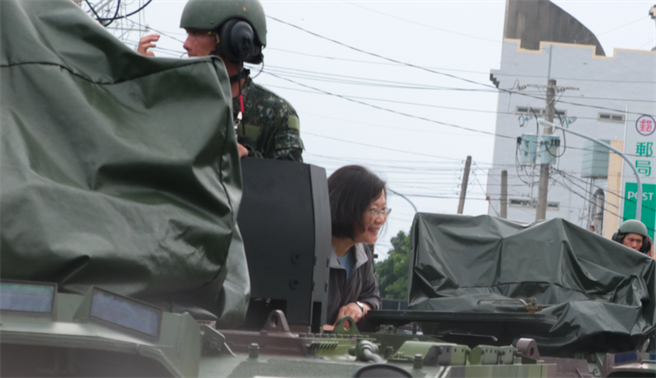 蔡英文搭云豹装甲车勘灾引发批评。 (图片取自台媒)