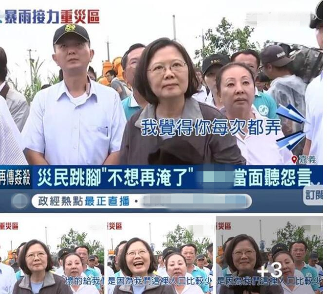 25日,在暴雨发生后的第三天,蔡英文终于出面勘灾。与众人想象中的画面不同,蔡英文的出场方式让灾民愤怒不已。