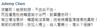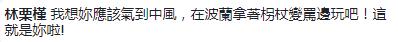 网友们纷纷留言“她现在岂不疯掉了,淹大水耶!是全部南台湾呢!”“邱大‘委员’这次怎么没有讲快要中风,你是以党论党吗?”“气到赶快去波兰狂欢来压压惊咩”“你怎么不骂了?难不成你中风了?丢脸啊。”“现世报来的真快啊”“一个旗山人跑去金门玩,一个旗山‘立委’跑去波兰玩,不知道这次屏东女儿要砸几台电视呢?”
